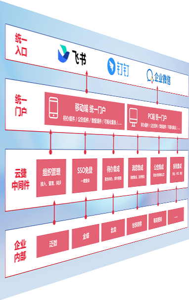 对协作平台提供支持服务,,,支持企业应用与协作平台对接,,,,包含组织同步、、、、消息集成、、待办集成等。。支持目前主流的协作平台:钉钉、、、企微和飞书。。。。