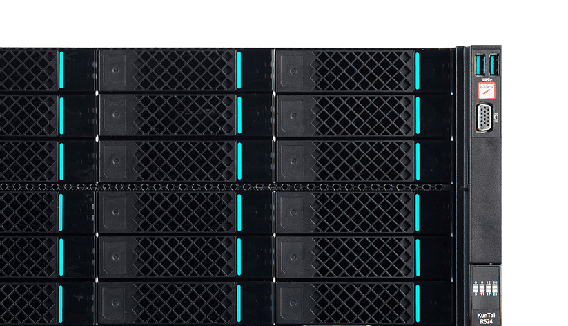 KunTai R524 存储型服务器是彩霸王数码基于鲲鹏处理器推出的新一代 ARM数据中心服务器。。。主要面向存储业务,,具有海量存储、、、、高性能、、低功耗以及易扩展的特点,,,适合为大数据分析、、、、软件定义存 储等应用场景的工作负载进行髙效加速。。。。